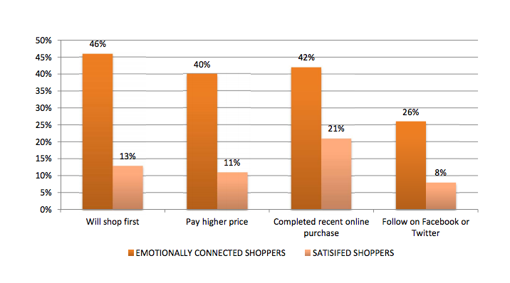 Emotional connection isn’t restricted to the retail industry. Consider the red-hot tablet market, where emotionally connected users are twice as likely to buy another tablet from their brand, and five times more likely to pay a higher price.