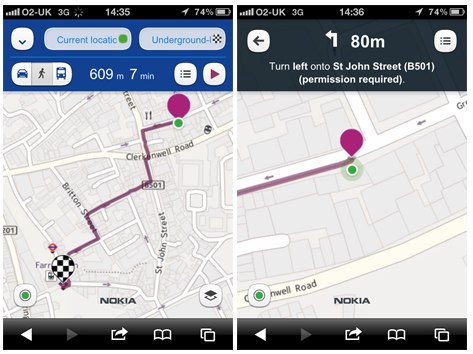 The new web app works on iPhone, iPad or Android (2.3+) device, and is accessible from m.maps.nokia.com.