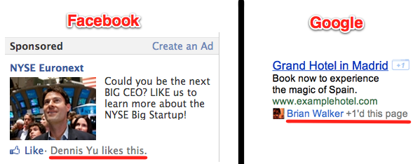 This social context increases click rates, and so Facebook probably shows ads that can include social context more prominently so it’s more likely to earn money on clicks. Google and many sites also optimize ads based on your past behavior, such as +1 button clicks, and through cookie retargeting. Social game companies, likely including Zynga, show different ads to big spenders. Facebook and a signficant percentage of online advertisers also employ click fraud prevention systems covered by Yahoo’s patents.