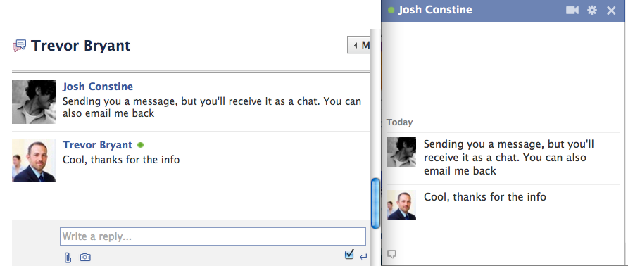 Facebook launched its unified messaging product in November 2010 that lets users seamlessly communicate across asynchronous messages, instant message chats, and emails. Yahoo claims Facebook infringes on its patent for seamless cross-communication between email and instant messaging users. Facebook’s own innovation here was dynamically recognizing what was the most relevant medium to deliver a message through, such as delivering a chat if you were actively online, or a message to your mobile device if you were browsing the mobile news feed. This feature is one relatively unique to Facebook, but some smaller group messaging services may also provide it.