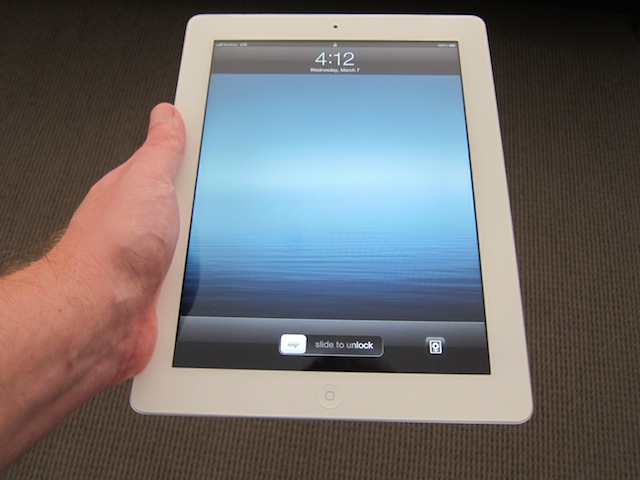 As for LTE being a burden on the design of the product, Apple has been able to keep the shell of the new iPad almost exactly the same as the previous iteration. It’s ever-so-slightly thicker (0.37 inches versus 0.34 inches), which you can only really tell when you hold the two at the same time. The new iPad also weighs slightly more than the iPad 2 (1.46 pounds versus 1.36 pounds — for the cellular versions), but the weight difference is basically indistinguishable.