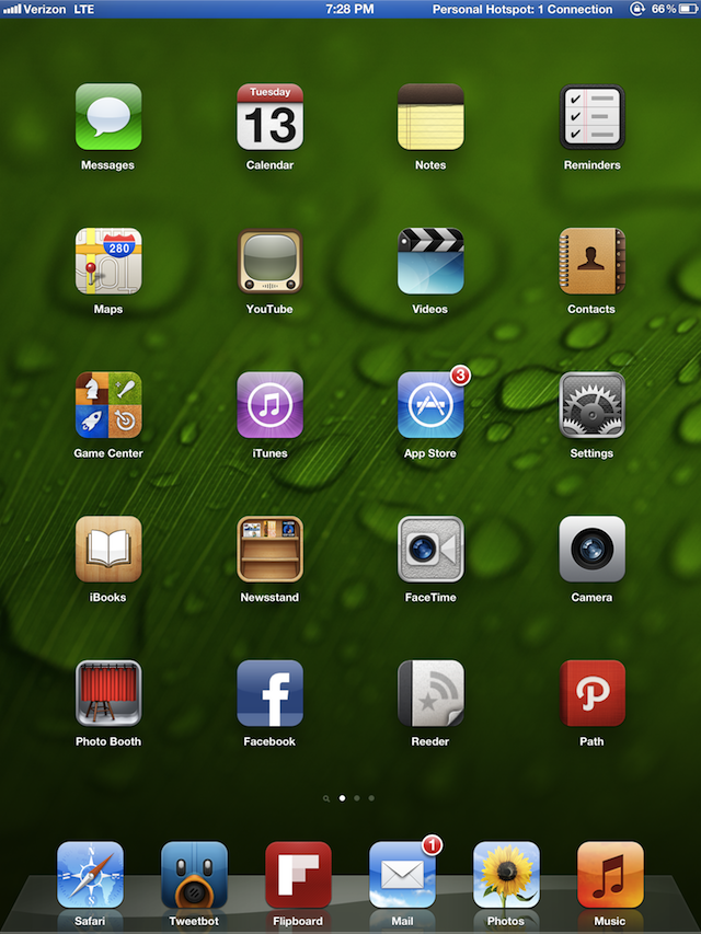 Perhaps it’s unfair to say the older iPad screens look “blurry” compared to the new iPad. It’s more along the lines of “fuzzy”. After using the new iPad for an extended period of time then switching back to an iPad 2 (or 1, for that matter), you’ll cringe at the pixelated cloud the appears to surround every app icon. Text will look murky. Colors will look muted.