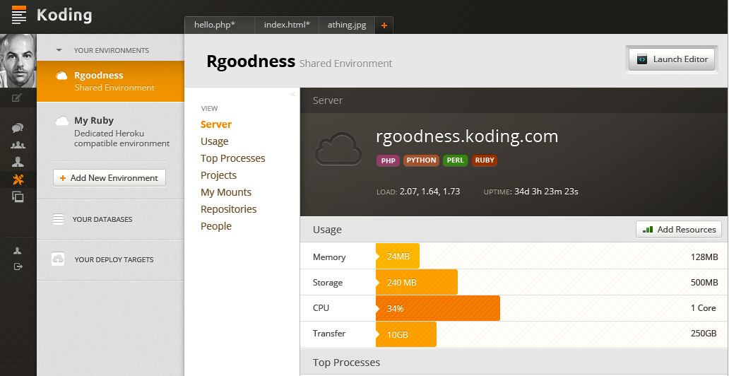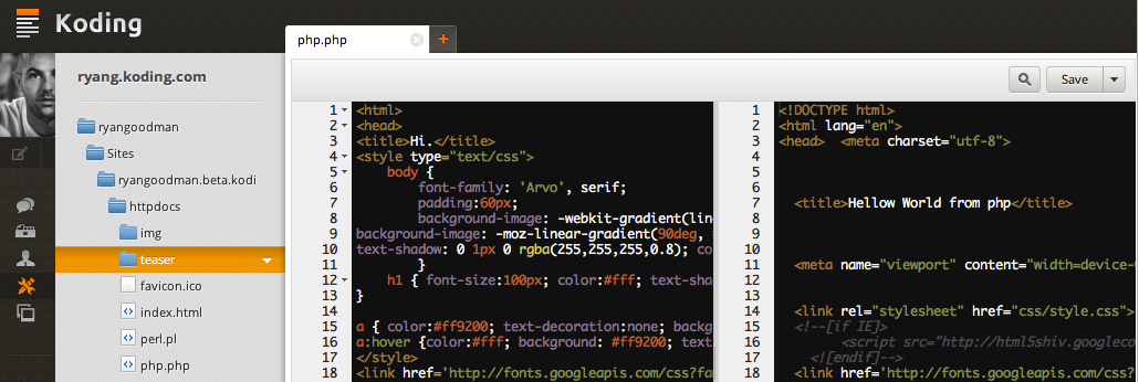 Today Koding releases a big expansion, allowing for full software development from the browser in ruby, python, C++, php, perl, & node.js. Developers can code from a functional Terminal in their browsers that connect to a free hosted server. It’s got proper security, and doesn’t discriminate between languages or hosts. Programmers can bro out and collaborate through the development community, and authorizing each other to work on products is as easy as friending someone on Facebook.