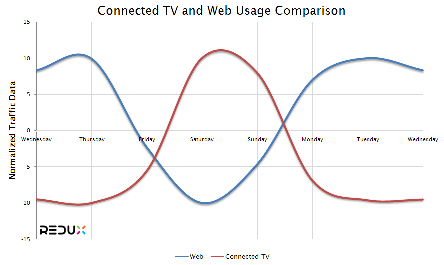 Additionally, usage on Connected TVs peaks on weekday nights and on weekends: