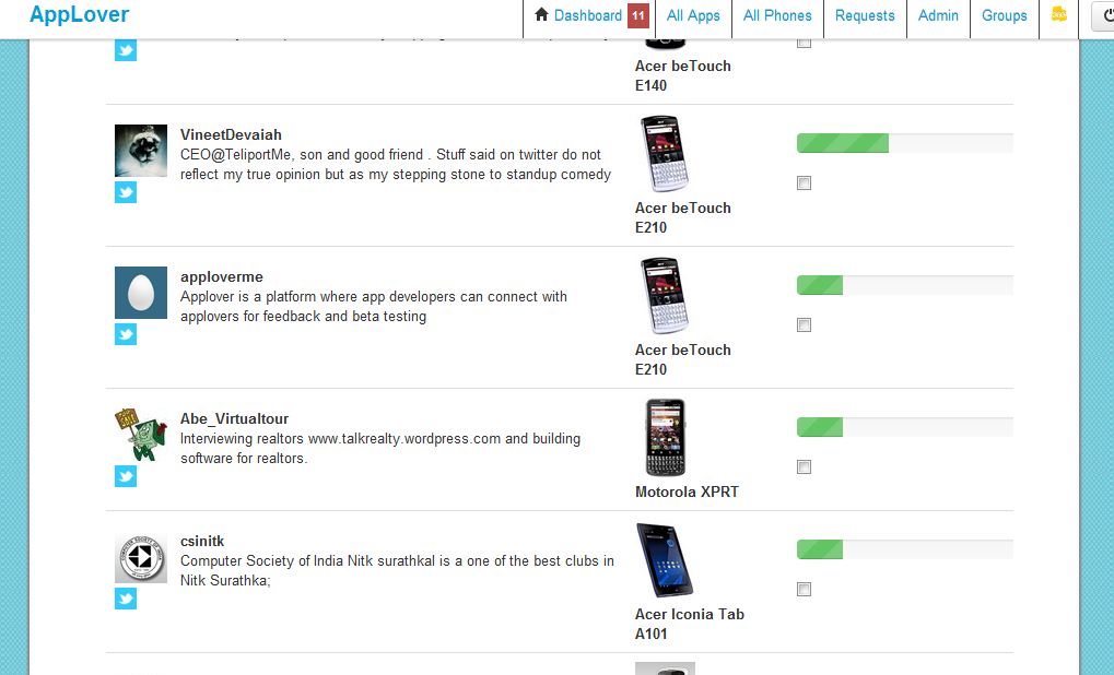 “While we made a lot of changes in our application which you could document as the reason for this increase in ratings, the fact is that our iteration rate got better and better,” Devaiah says, “we were able to push updates at a much faster rate and help build a better product and test faster.” Thus, the founder believes that Android stands to benefit significantly from a crowdsourced testing platform — to a much greater degree than iOS. So, this weekend, Applover opened up its platform to 200 beta testers and 20 app developers, who collectively have 5 million downloads on the Android Market.