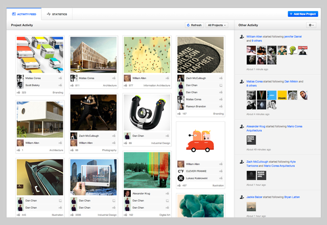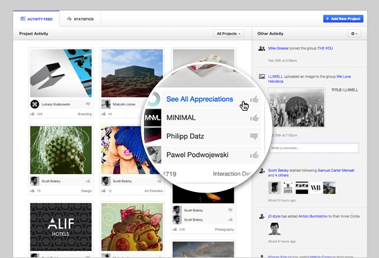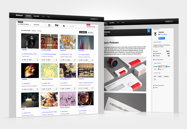 The Behance of old had some annoying fragmentation between its .net and .com domains, but the redesign has resolved that, as Behance.com redirects to the former. The point being that today it looks like a serious technology company. It offers analytics, high level search, segmentation, and discovery, realtime activity streams, project management tools that basically allow you to upload and customize a wide variety of content without feeling like you’re working with three-year-old Drupal technology. Following and “appreciating,” along with an internal messaging system, give it the requisite modern social features.