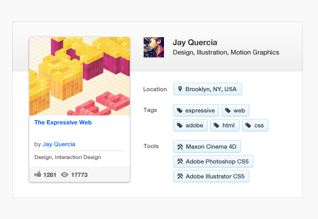 Obviously, the real value of this redesign is that it is now leveraging the power of deep search, social networking functionality, data-mining, and technology that can power a whole mess of websites, and thus can gain data and action-based insight into how creative professionals work. With more exposure and higher transparency resulting in better attribution, creatives stand to better grow their own personal brands.