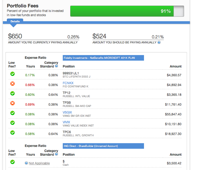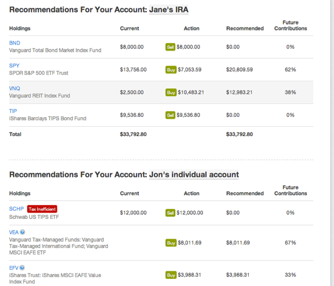 Additionally, you can enter in data about your age and retirement goals and the FutureAdvisor algorithm provides you with options for asset allocation, how to optimize your return, and, if you currently work at Google, Microsoft or Intel, the app can tailor its advice within your 401K’s limits.