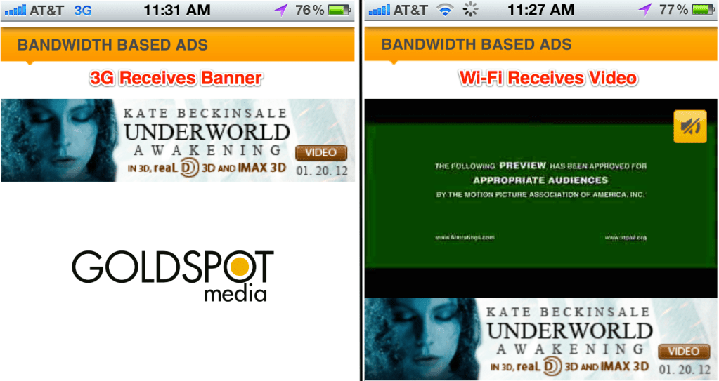 Exclusive: GoldSpot Media has just unveiled its new “bandwidth-based ads”, a licensable technology that lets advertisers deliver a single mobile ad unit that appears as a simple rotating banner to viewers on 3G or mobile data, but as an auto-playing partial screen overlay video to viewers on wi-fi. Debuted on a new Zyrtec pharmaceutical campaign, you can compare the formats for yourself by turning wi-fi on or off.