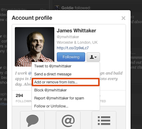 For Twitter’s hardcore user base, the often neglected “list making” option will be one of TweetDeck’s most welcome additions with the new release. Now, users will be able to create, edit and delete lists directly in the app. All Twitter user profiles will also have a new button that reads “add or remove from lists,” so you can manage list membership on the fly.