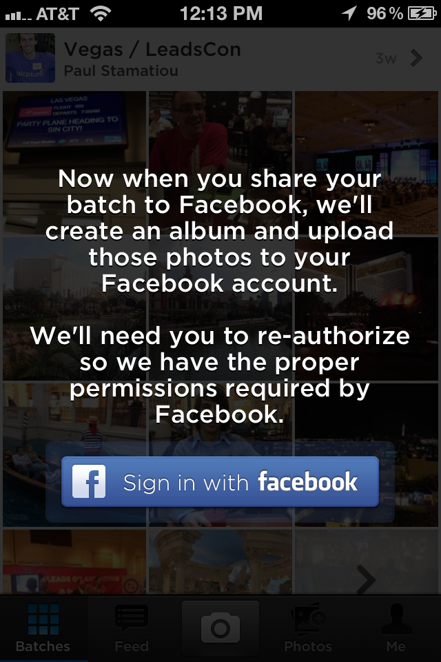 The change may finally allow Batch to live up to Mike Arrington’s earlier suggestion that Batch “may be the perfect mobile photo sharing app.” I’ll admit, it definitely had a lot going for it when it launched last fall, but I (like many of Batch users, apparently), found that I still wanted to share photos directly on Facebook. That is, I wanted the photos to reside on Facebook itself, not within a third-party service.