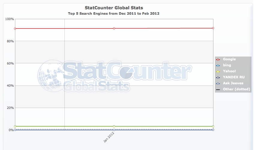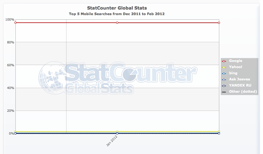 The Competition Commission will be weighing up whether Google’s search dominance is enough to stifle competition for others, but just taking its position in search on its own, the leadership Google has is hard to ignore. Here’s the lay of the land in the last three months on PC search and mobile search. Currently, Google respectively has 91 percent and 97 percent of the search market: