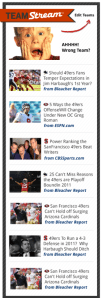 Team Stream allows fans to customize the homepage with content from as many of their favorite teams as they choose, and log in to Facebook to save their team settings so that the news appears every time a user visits the site — but login isn’t required to access team stream. And as an example of Bleacher Report’s somewhat unique approach to sports news, your personalized Team Stream is curated by the site’s editors, rather than by RSS aggregation. It’s all hand-picked.