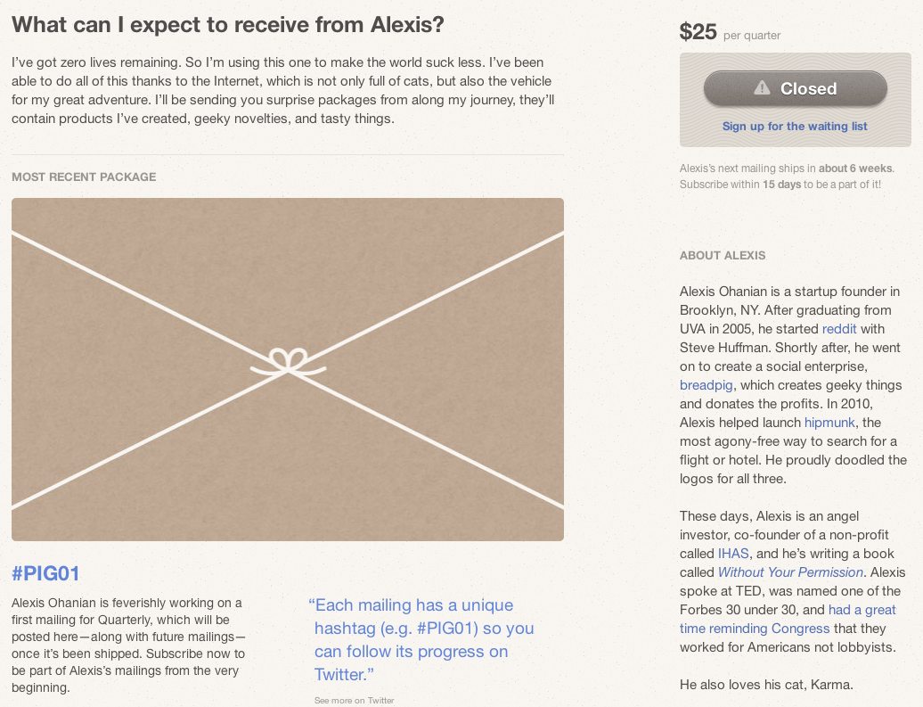 The team is also being tight-lipped about its progress since launch, but at the time, it was adding a new subscription every 5 minutes. Quarterly’s website does give some indication, however, saying that “due to high demand,” it has temporarily closed the service to new subscribers. The website also seems to make mention of some new contributors on deck, so we’ll update when we learn more.