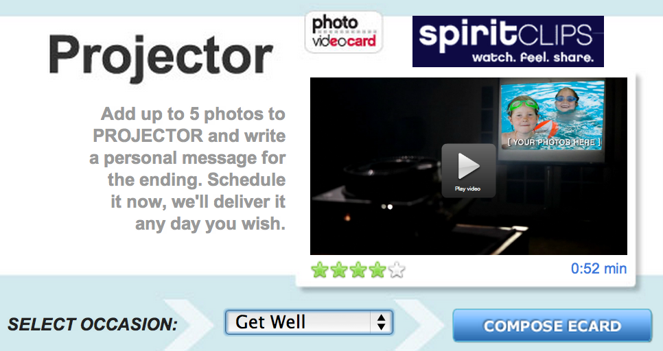While services like Animoto may offer more powerful photo and video editing tools for creating e-cards, they could be too complicated for the average Hallmark customer. Hallmark could use SpiritClips to make it as simple as possible to create e-cards full of user generated content. That way Hallmark could could bring even its least-savvy offline customers into the modern age where 1s and 0s can express love.