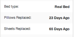 Even better, maybe there’s a way for the hosts to mark in their account that this has happened, so potential renters can see “Pillows replaced 23 days ago” in the profile. I know this seems minor but think about it: you are smashing your face (and mouth) into the pillow for 8 straight hours. You should care about how many other people did this on the same pillow.