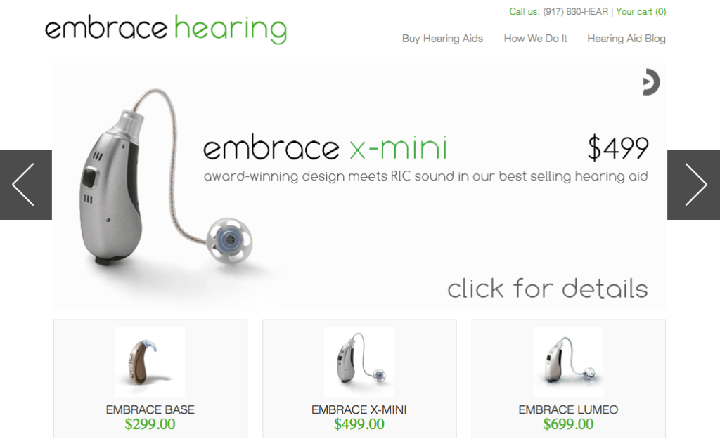 While selling hearing aids isn’t a sexy business, it doesn’t take much to see the market opportunity here. With some smart marketing and well-branded products, Embrace Hearing could very easily make a play at being the Apple (or Warby Parker) of hearing aids, taking tired designs and clunky models and giving them a smart, design-centric, and user-friendly alternative.