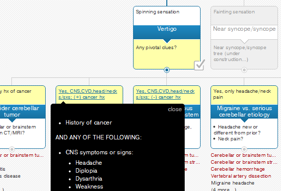 That means that, visually, Agile Diagnosis’ tree format was designed to make clinical guidelines and medical information easier to digest and thus more actionable, as compared to the apps and web services that come densely-packed with text — the same format that has plagued medicine for decades.
