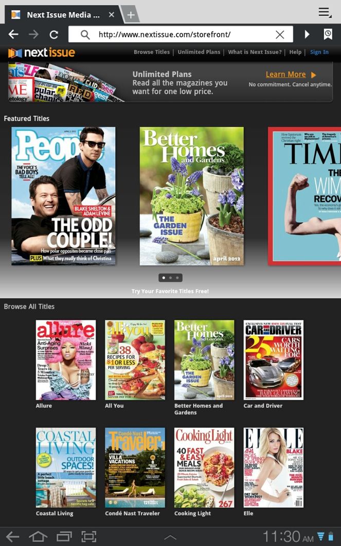 With many magazine publishers look at tablets (especially the iPad) as their salvation, five of the big ones (Conde Nast, Hearst, Meredith, News Corp., and Time Inc.) banded together to create a joint venture called Next Issue Media. Today the company is launching its Android app.