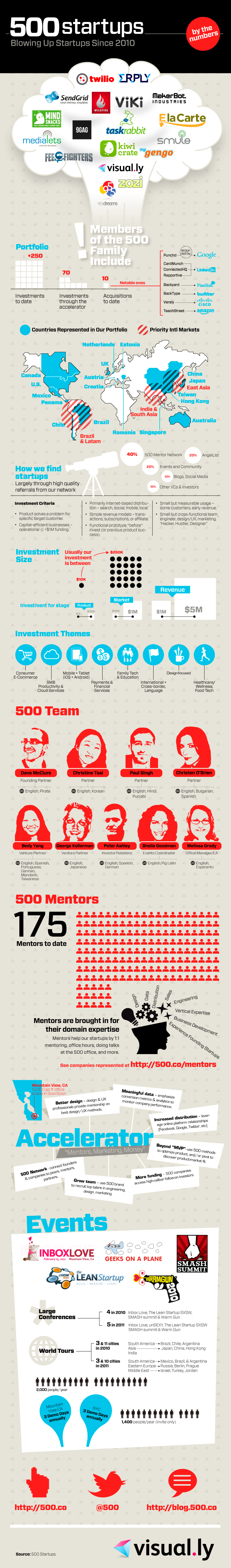 For more on 500 Startups current metrics, check out the infographic the team prepared with the help of the wizard designers over at Visual.ly. Can also find a conversation with the partners here.