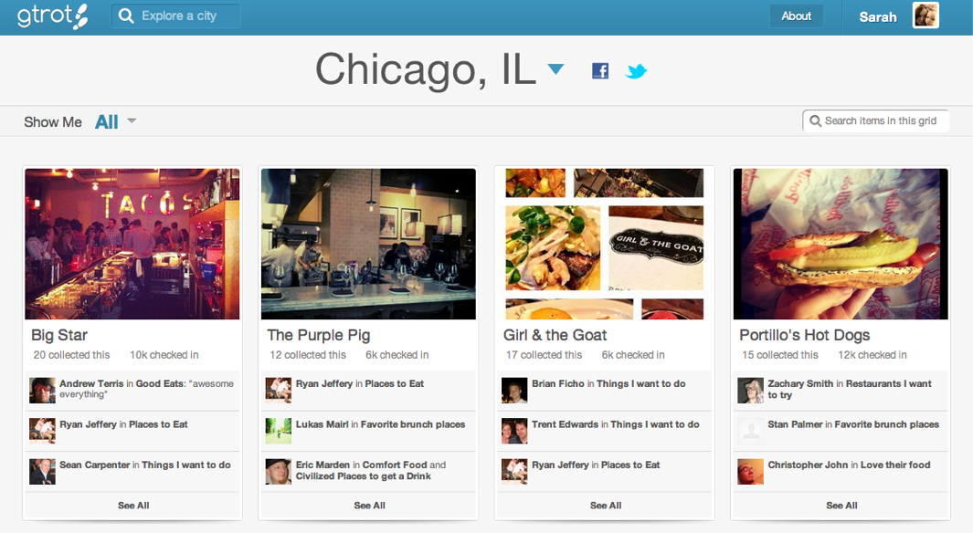 Social travel planning service Gtrot is changing its focus and is now officially relaunching its website with a new emphasis on local discovery. Somewhat reminiscent of Foursquare’s “Explore” feature, Gtrot is working to build a platform where you can discover, save and share the best restaurants, bars, clubs, arts, events and even the best local deals from services like Groupon and Gilt City.