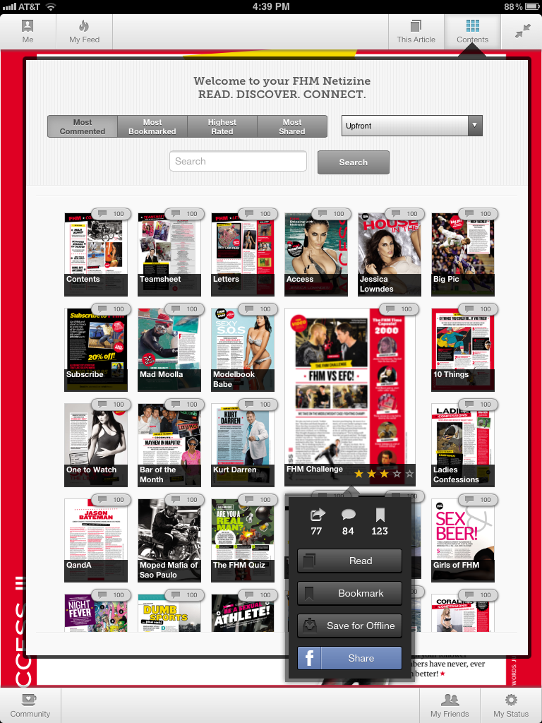 Instead of trying to reproduce the print magazine in digital format, with Netizine, the solution is to use social metrics as a way to present a magazine’s articles. For example, readers can dive into the “most commented,” section first, or the “most bookmarked,” “most shared,” or “highest rated.”