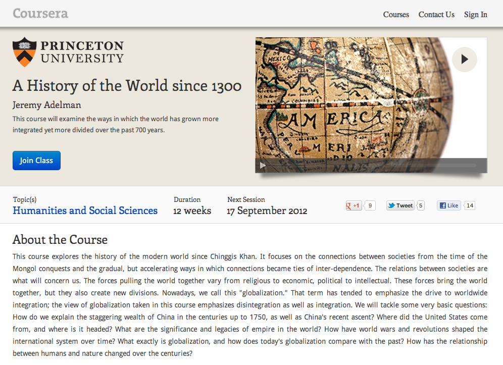Coursera has a head-start on Udacity in terms of offering a more liberal arts-style education, and if Udacity opts for the Salman Khan approach of one teacher for all subjects, Coursera may be on to a more sustainable, or perhaps even more effective model, by facilitating the distribution of courses taught by those who are experts in their particular field. Either way, both startups represent an important step forward for education (and its cost) by making college-level classes accessible to anyone who wants to learn.