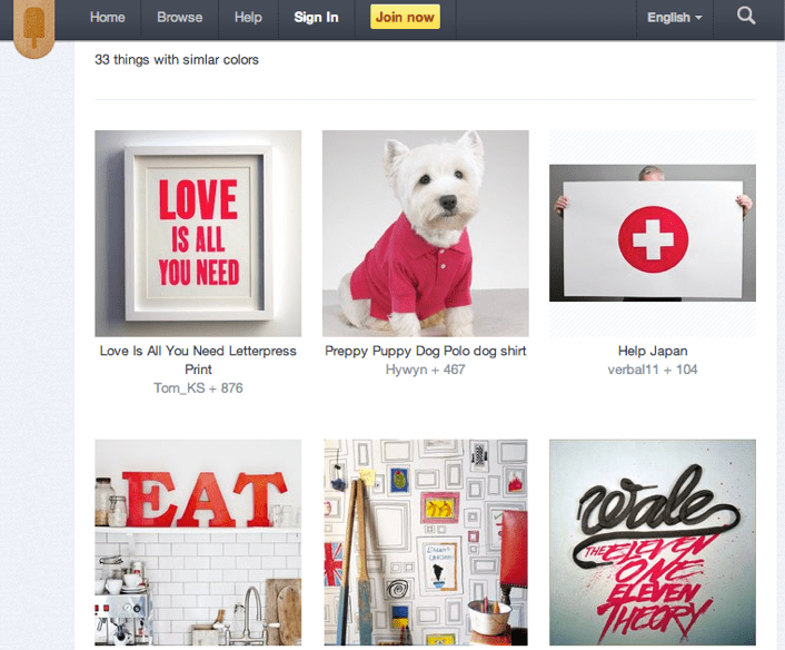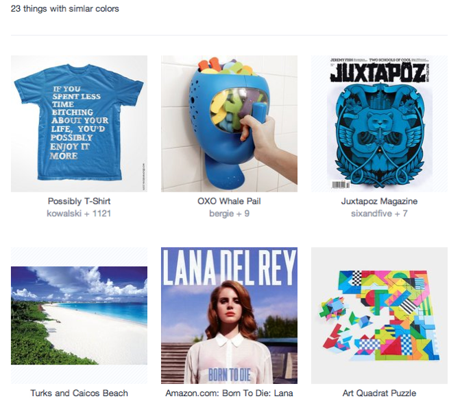 The latter addition, which brings to mind the “search by color” feature over on crafty community Etsy or the new color search option on Fab.com, is powered by image recognition technology built by The Fancy itself.