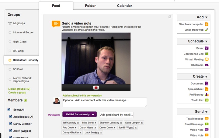In conjunction with this growth news, the platform, which currently offers web conferencing, file sharing, chat, document creation, and more, is now also adding video messaging to its available services. A premium version of Wiggio’s service is entering pilot testing, too.