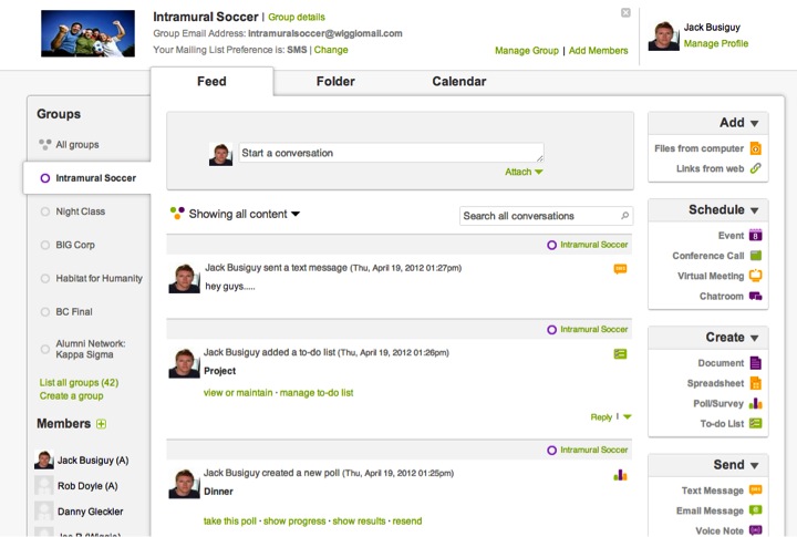 There’s also a heavy focus on mobile, says Lampert, which is why the company has designed the product to include several mobile-friendly features like support for SMS and email. For example, one of the service’s more popular features, a listserv tool, is text-messaging enabled, allowing students to receive every post as an SMS text. In addition, the native iPhone application is now being used by 45,000 Wiggio users, and the Android version will arrive in just a few months.