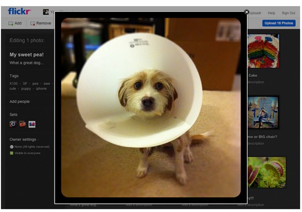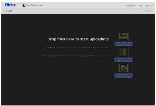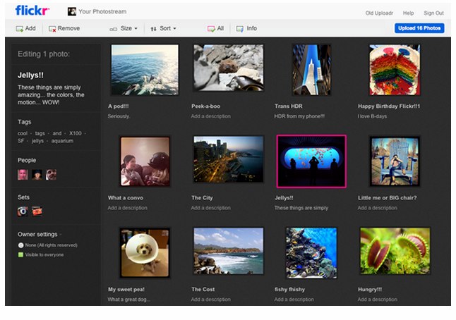 With the HTML5 technology, Flickr’s uploader has a more robust experience, including drag and drop functionality. So instead of only being able to upload manually, you can add photos by dragging them into the browser. Yahoo will also show your thumbnail previews of photos, so you can manage and reorder photos before they hit your photostream. And you can zoom, rotate or sort your photos by title within the uploader itself, as opposed to within the photostream.