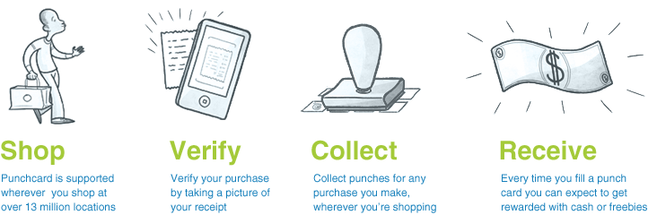 Consumers use the app, which now works at 15 million (!) locations in the U.S., to verify their purchases by snapping a photo of their receipt. As they collect punches on their virtual cards, they can earn their way to cash, freebies and other rewards. Generally (unless a merchant has specified otherwise), the rewards arrive after the 10th purchase, and, if cash-based, are the equivalent of the average order value up to $30.