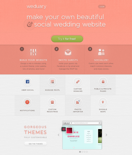Morin tells me that while TheKnot.com, MyWedding.com, and WeddingWire.com all let users create wedding sites, Weduary is at an advantage due to its novel Facebook integration, “We are combining the social power of Facebook groups with beautiful themes, plenty of customization options, and other premium features for brides and guests alike.”