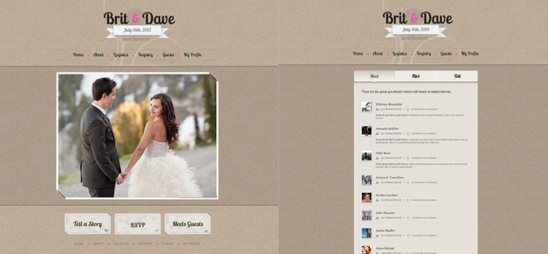 In addition to logistic planning, the app allows guests to build personal pages using their Facebook profiles and encourages them to connect with other guests through common interests. The app monetizes by offering premium features, right now custom URLs are $15 and premium themes are at $20.