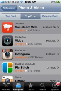 Socialcam’s chief competitor is Viddy, an app that also lets users shoot, edit and share videos from their smartphones, and the battle between the two companies is fast and furious. Earlier today Socialcam pulled past Viddy as the top video/photo app in the iTunes app store (see screenshot at right) — but it’s been a horse race of sorts, as the two apps have switched spots on the list several times since I started writing this article.
