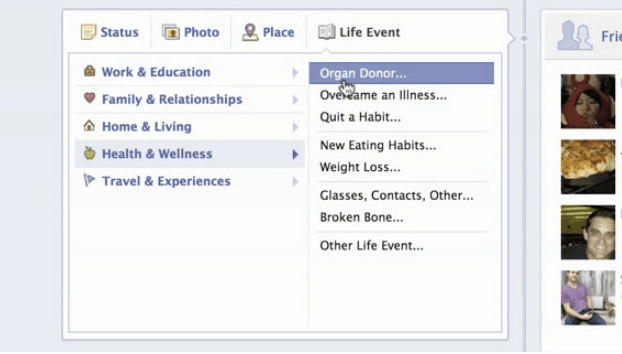 Starting today, you can add that you’re an organ donor to your timeline, and share your story about when, where or why you decided to become a donor, says Facebook.
