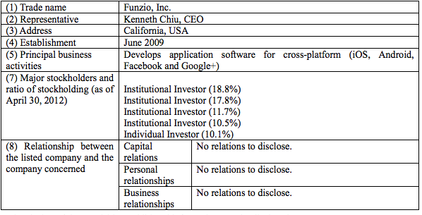 Continues to Grow Core Gaming ExpertiseSan Francisco, CA – May 1, 2012 – GREE, a leader in the mobile social gaming industry, today announced the acquisition of Funzio, Inc., a trailblazer in developing mid-core mobile game titles. The acquisition will strengthen GREE’s ability to bring high-quality games to the mobile social games market. Funzio’s titles will also join the roster of cutting-edge content planned for GREE’s global platform.