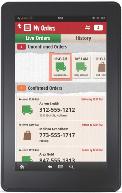 OrderHub is an Android tablet app that allows restaurants to manage online orders they get through GrubHub. Previously, GrubHub enabled orders to be faxed to restaurants, and restaurants confirmed they have received orders through an automated phone service. OrderHub allows GrubHub to instantaneously push orders to restaurants through the app, and restaurants confirm the order with a few taps.