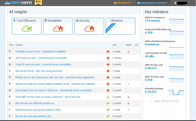 Newvem will analyze and determine whether a user’s environment is meeting expectations from a cost, availability and security perspective and detect and notify where it is not up to par. The app is built for Business Managers, IT Managers and Dev Ops to “get to know” their clouds, so they can better see what resources are being used and not used.