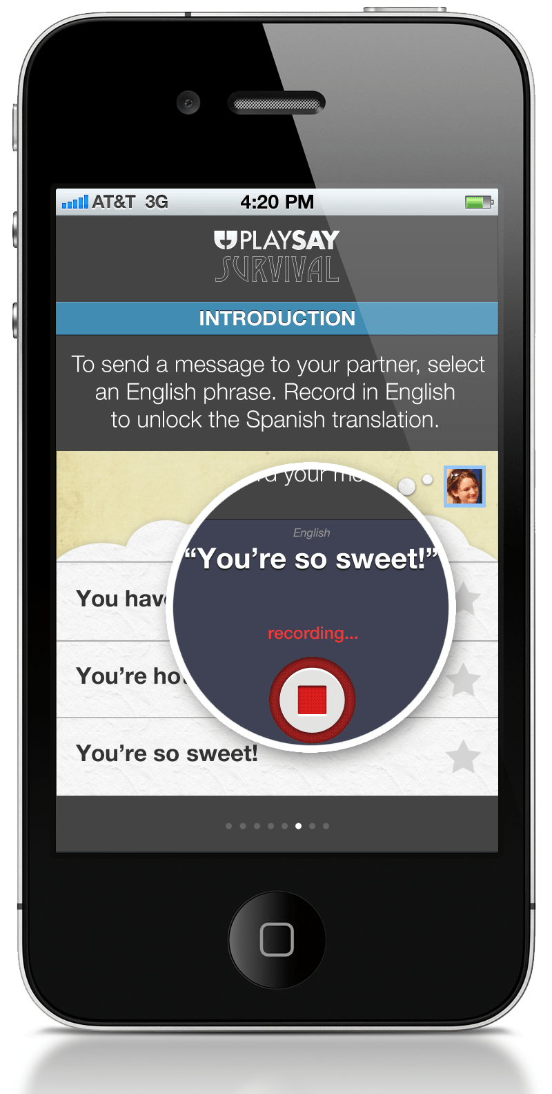 Like runaway sensation Draw Something, PlaySay’s app is a game that lets users connect with a partner elsewhere to progress. In the case of PlaySay, it incorporates real conversations and pronunciation feedback with native speakers into a narrative structure, constructed as “missions,” in the parlance of the app. There’s more detail on how it works in the video below.