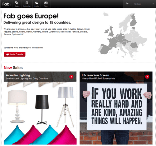 In addition, Fab plans on making further strategic investments in the coming weeks to spread across Europe, meaning hiring and acquisitions of other companies. As you may remember, Fab.de grew out of the acquisition of Casacanda, a top flash sales site serving Germany and Austria.