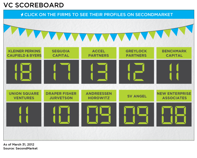 SecondMarket, which has served as a hub for transactions of pre-IPO Facebook stock for a few years, will have to find some new venture-backed companies to pique investor interest this year. While Facebook is a big loss, there are plenty of other startups that have become hot prospects.