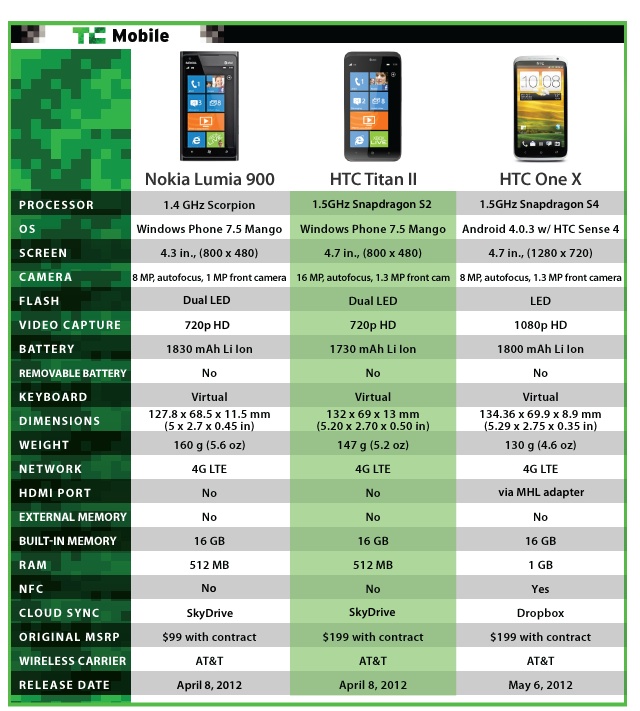 When weighing these three phones against each other, the similarities are abundant, as are the subtle differences. For example, the Lumia 900 will net you $100 less than either of the other two phones. At the same time, it’s a touch smaller than the Titan and the One X, and if you prefer HTC hardware to Nokia’s then that doesn’t really matter.