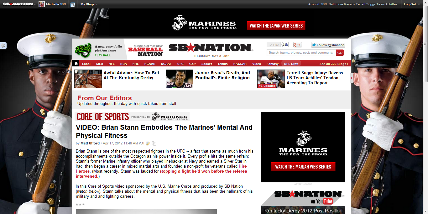 Another example, with a more direct editorial tie-in, is a “Core Of Sports” themed set of posts that goes along with a recruiting campaign by the U.S. Marines. The series covers professional athletes who have also served in the corps.