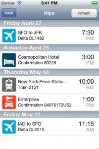 This lets people keep all their work travel expenses — from pre-ordered things such as flights and hotels, to on-the-spot things such as taxis and meals — in one place, organized by trip. Once the trip is done, a user can send the full itinerary off for employer reimbursement from his or her mobile device with one click.