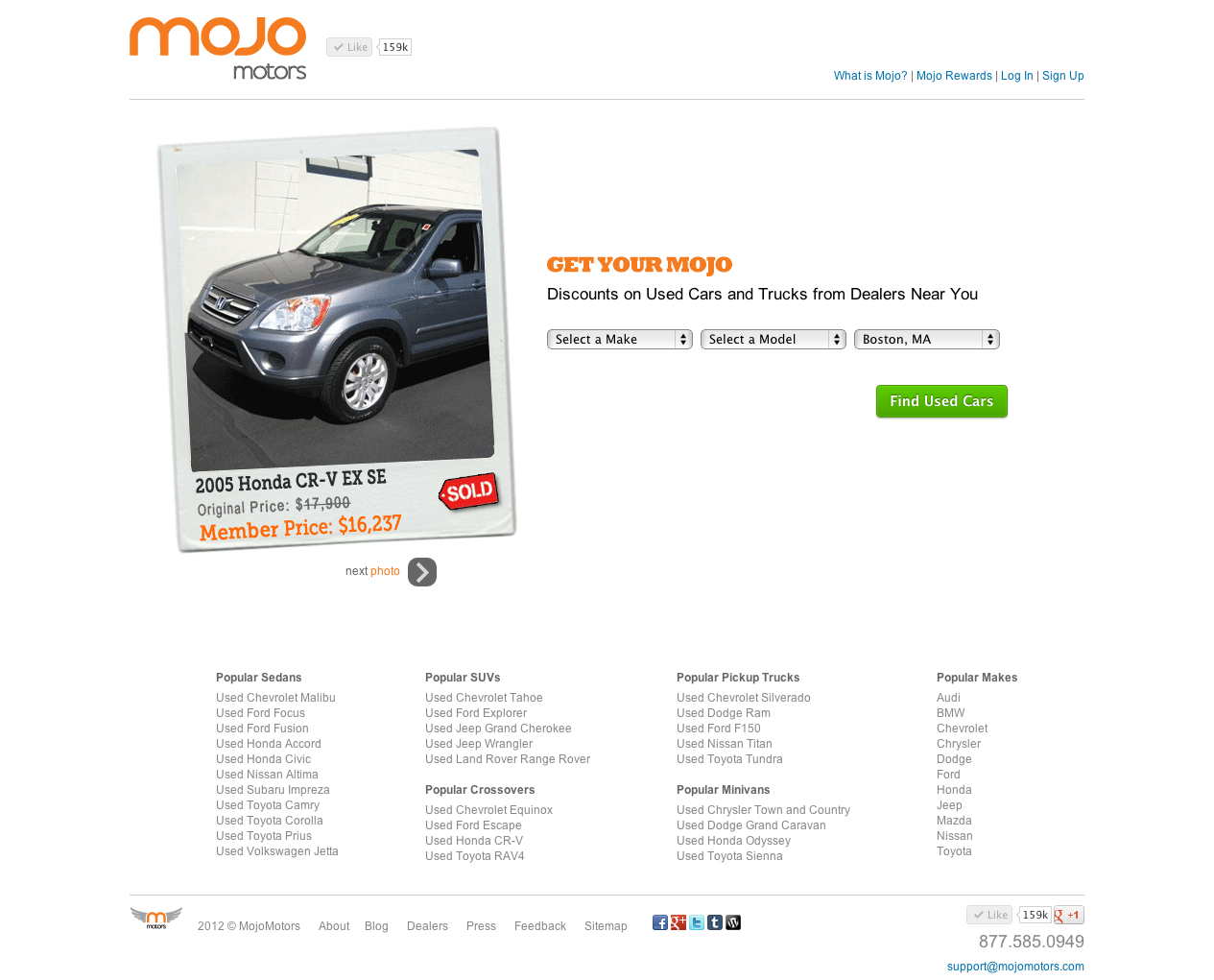 Users only contact dealers once they’re ready to test drive, avoiding spam and hassle, while presumably getting a better deal. As to how Mojo is monetizing? Both shoppers and auto dealers join the site for free, but the startup charges dealers a $350 success fee when a member actually purchases a car from their lot.