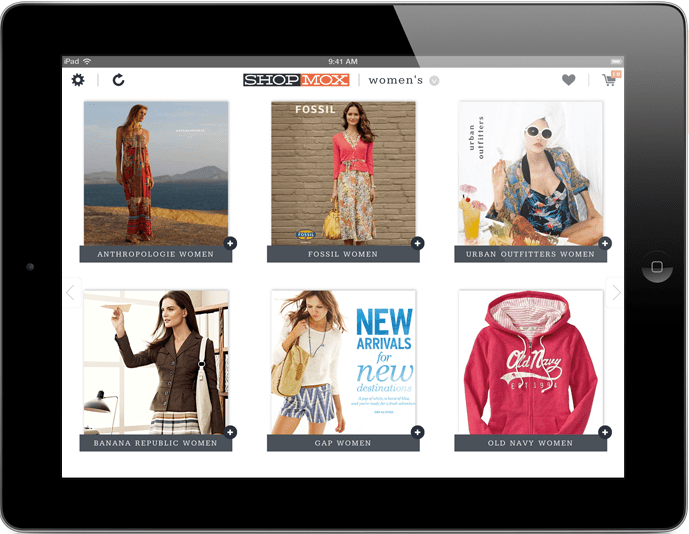 Enter Shopmox. Launching today, this iPad app aims to bring the mall to the iPad by incorporating 26 stores from half a dozen or so retailers, including Anthropologie, Gap, Banana Republic, Urban Outfitters, Fossil, Old Navy, and Gap Kids, to name a few.
