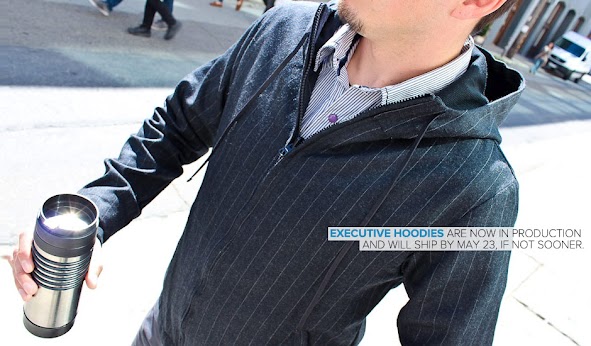 Really, the only downside of the executive hoodie (priced at $149) is that it’s not shipping until late May. Which means the TechCrunch staff probably wouldn’t receive ours before Disrupt. And that’s a big bummer, because we were really hoping to class up our game before the event.