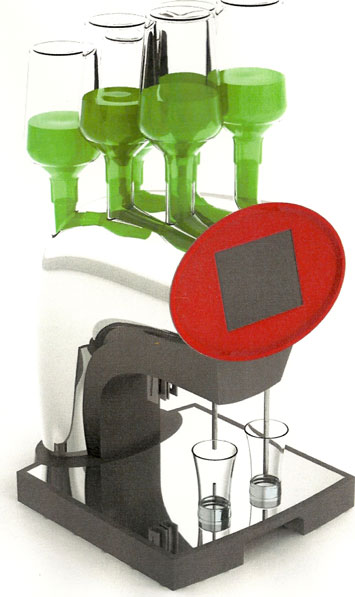 LayerNation is part of the Yes Delft! incubator and is currently being tested in Europe as a fast and easy way to make clever drinks for soccer games and special events. The initial version, shown above, has been replaced by a more commercial-friendly system that looks like it would be at home in an Ibiza club.