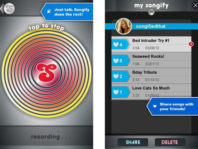 Originally developed by Khush (whom Smule acquired toward the end of last year), Songify turns user-recorded speech into surprisingly listenable songs by tuning those voice inputs to go along with preset background music. The iOS version peaked at #1 on Apple’s Top Free Apps chart shortly after its launch in July 2011, and Smule now hopes for similar success as it expands into new territory.